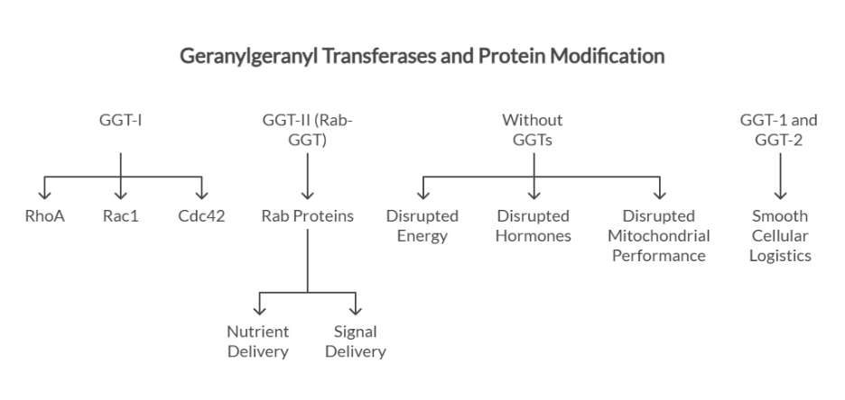 Geranylgeraniol (GG) bridges this gap, complementing both sides by restoring a key pathway component that supports mitochondrial function and hormone production. Thereby, using the strength of one system to help correct the deficiency of the other.