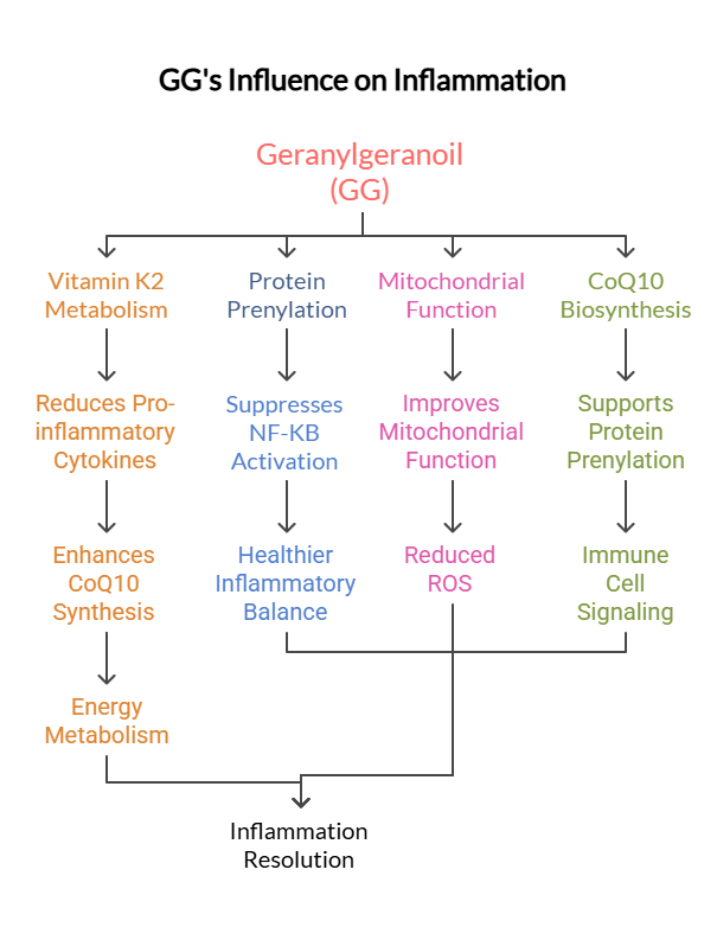 - GG plays a structural and regulatory role in cell signaling, mitochondrial function, and steroid hormone biosynthesis.