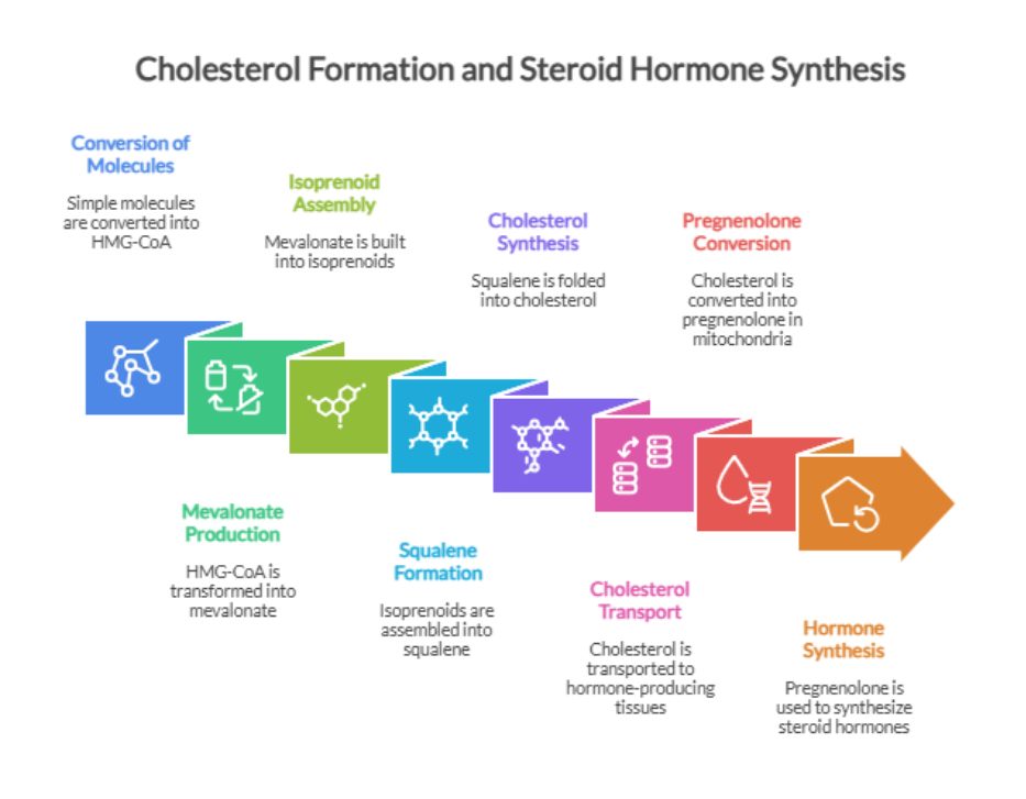 Steroid hormone production is a carefully coordinated cellular process that begins long before hormones enter the bloodstream. From cholesterol synthesis in the mevalonate pathway to precise transport into mitochondria and enzyme-driven conversions, every step must work in harmony.
